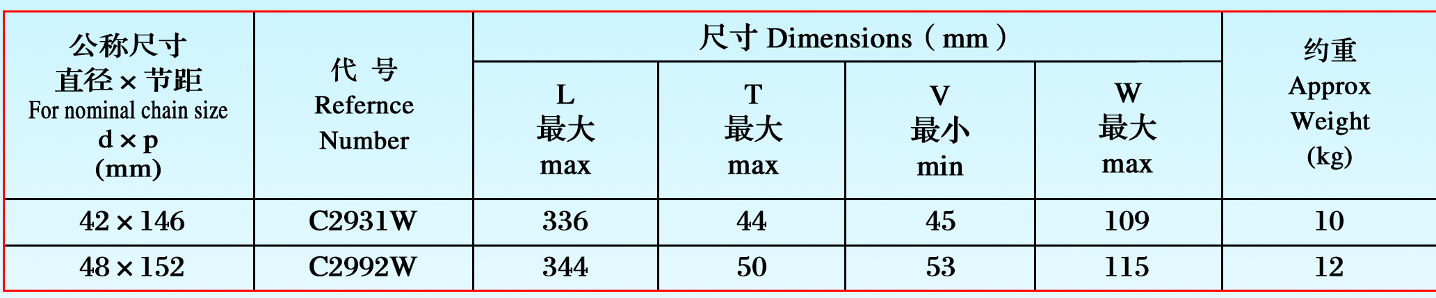 這種接鏈環只可垂直使用,其外形大小符合DIN22258 Part3 標準要求,并經精心設計,確保與配套鏈輪的配合。
